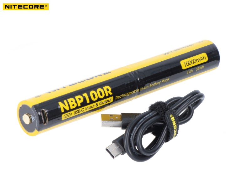 - В комплект входит литий-ионный аккумуляторный блок NITECORE, модель NBP100R, ёмкостью 10 000 мАч, оснащенный встроенным зарядным портом USB-C и обеспечивающий время автономной работы до 62 часов